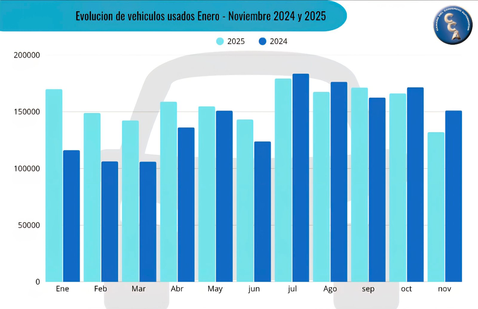 La Cámara del Comercio Automotor (CCA), informó que en noviembre se comercializaron 132.089 vehículos usados, un 12,62% menos que en igual mes de 2024 (151.174 unidades). Si se compara con octubre (166.285 unidades), la baja fue del 20,56%.