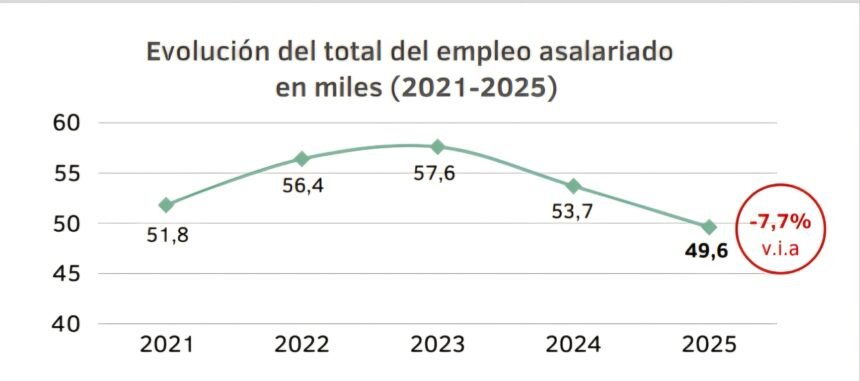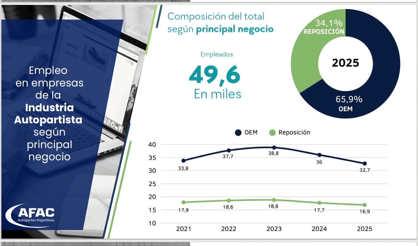 El empleo directo en la industria autopartista ascendía en 2024 a 53,7 mil personas, mientras que en 2025 llego a 49,6 mil personas, mostrando una caída del 7,7% entre ambos años, según un informe de la asociación que agrupa a los autopartistas (AFAC).