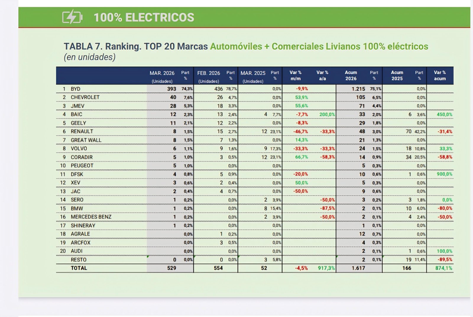 De esta manera, se quiebra la tendencia negativa de los dos primeros meses del año. En el acumulado de 2026, los patentamientos de autos mantienen una baja de 3,1% contra 2025.