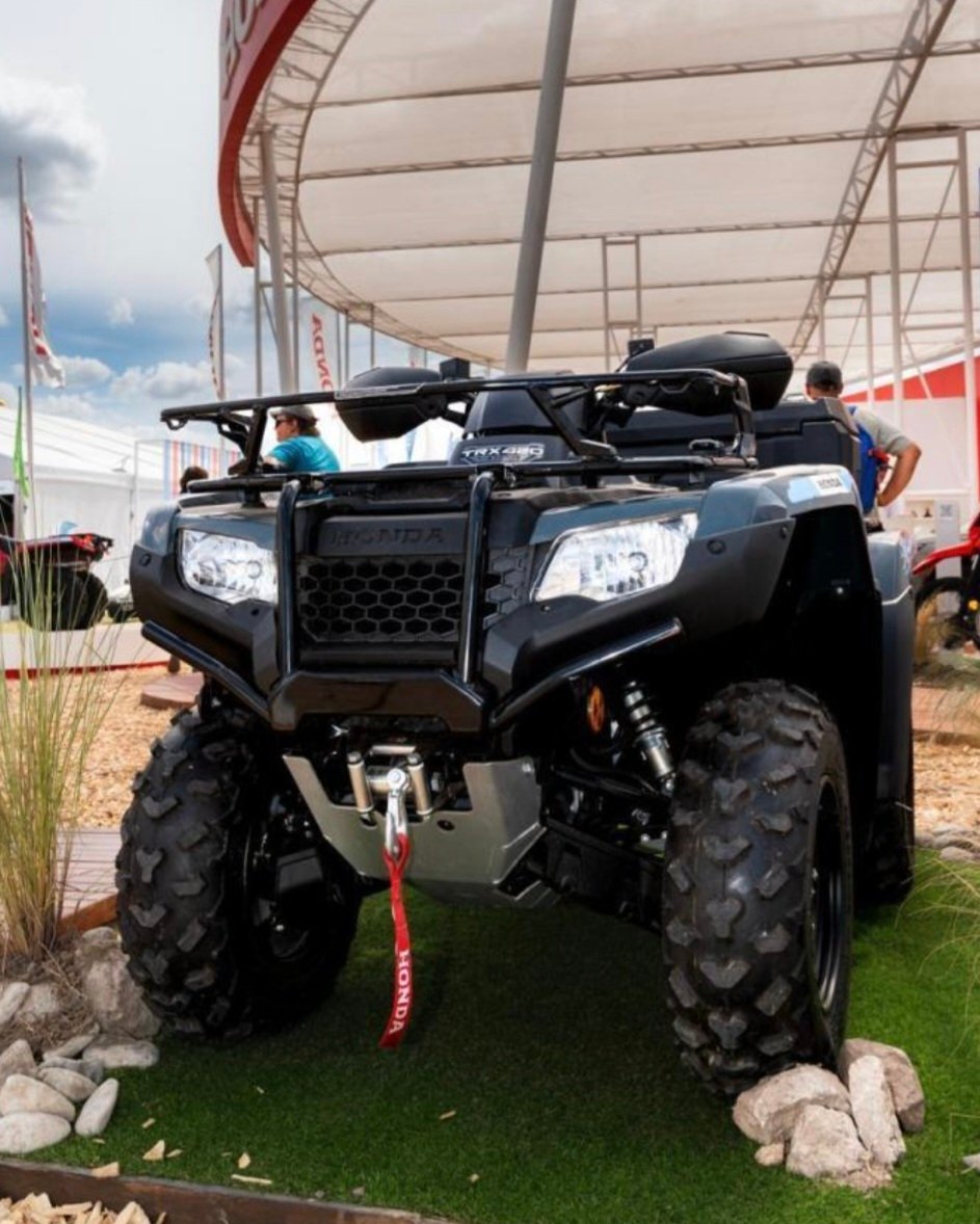 Uno de los ejes del stand es el TRX420FM, adelanto del primer cuatriciclo de producción nacional de la marca. Pensado para el trabajo rural, el modelo combina diseño robusto, durabilidad y eficiencia operativa.