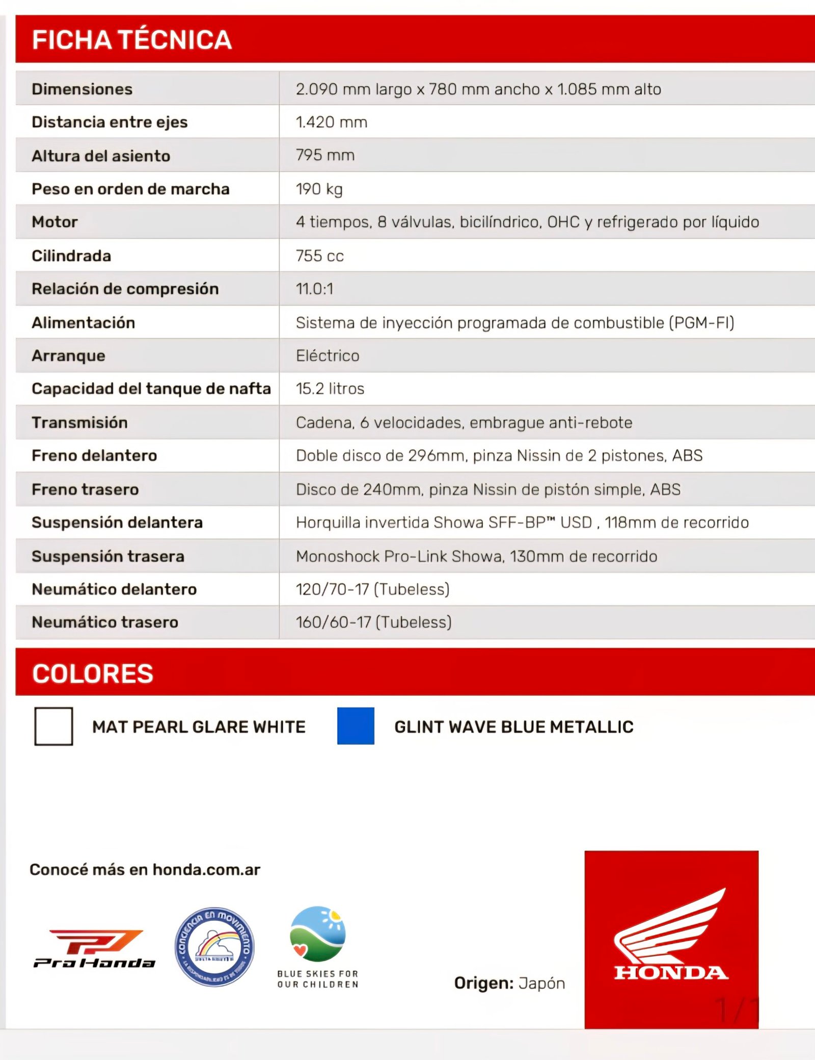 Disponible en 2 colores, Mat Pearl Glare White y Glint Wave Blue Metallic, ya está disponible en la red oficial de Honda, a un precio sugerido de u$s14.900, respaldada por una garantía de 3 años, al igual que el resto de la línea de productos de la marca.