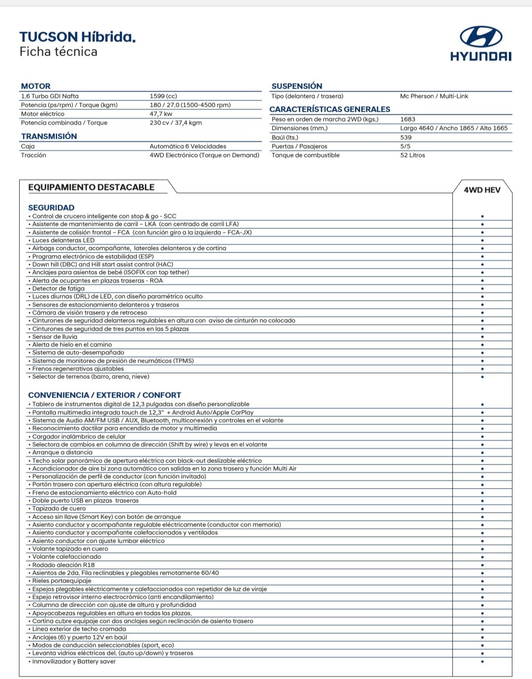 ● New Tucson Ultimate Hybrid 4WD: USD 66.000
