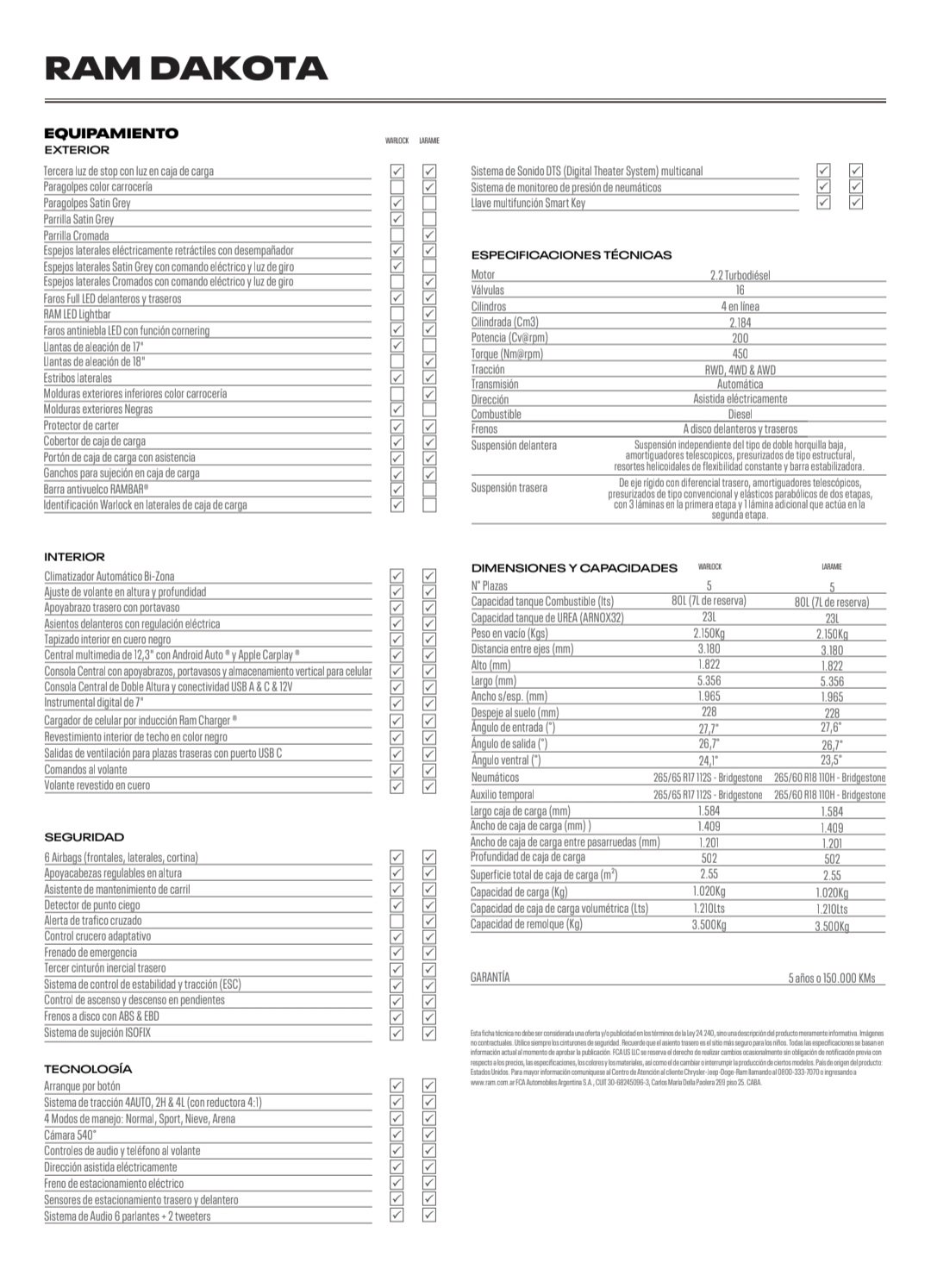 10 – Los precios de la Dakota son de $69.000.000 para la versión Warlock y $71.000.000 para la Laramie. La garantía es de 5 años o 150.000 kilómetros.