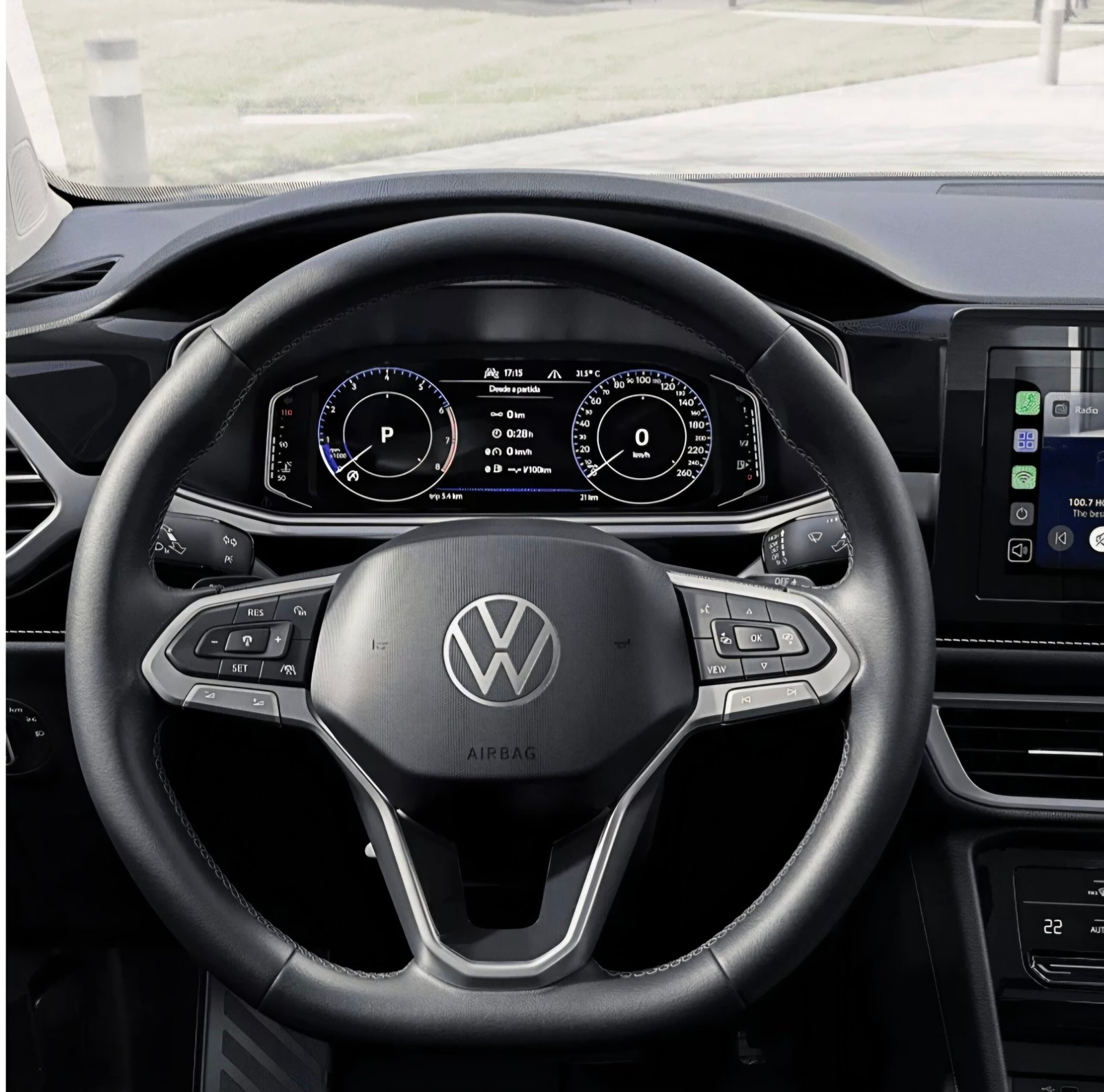 8 – El Taos Highline ofrece una dotación de confort acorde a su posicionamiento, aunque perdió algunos elementos respecto al modelo nacional, como el asistente de estacionamiento automático y las butacas delanteras calefaccionadas. Esta versión incluye asiento del conductor con regulación eléctrica, climatizador automático bizona, techo solar panorámico, tapizados de cuero, freno de mano eléctrico, sensores de lluvia y luces, tablero digital configurable, pantalla multimedia de 10 pulgadas. Tiene rueda de auxilio temporal y la cámara de retroceso no tiene buena definición. De noche ayuda poco. Muy distinta a la definición que la de la Tiguan.