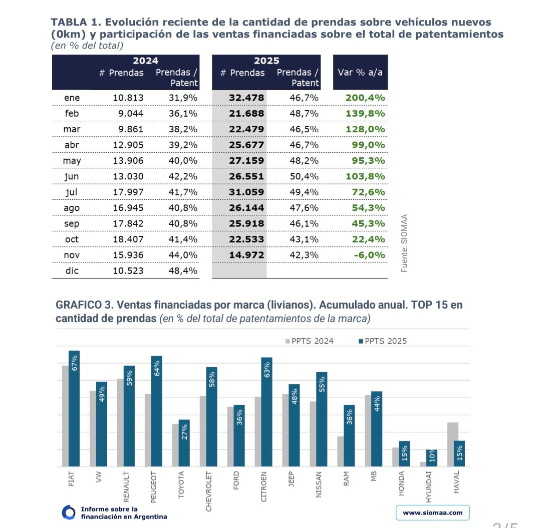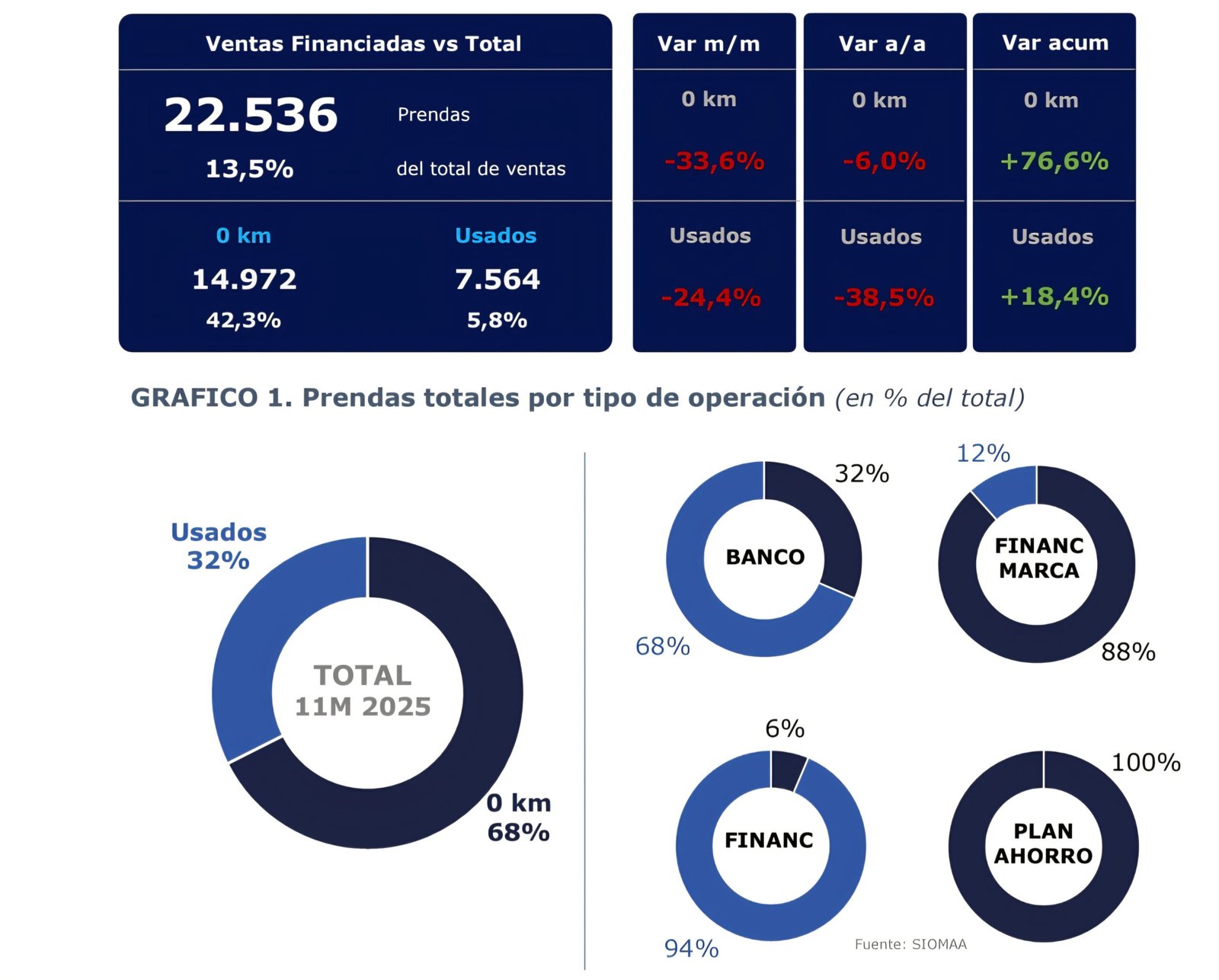 ● A pesar de esta corrección mensual, las prendas acumuladas en el año se mantienen con un sólido crecimiento: 76,6% en 0km y 18,4% en usados. Esto sigue demostrando la relevancia del financiamiento para sostener la demanda cuando las condiciones macroeconómicas lo permiten.