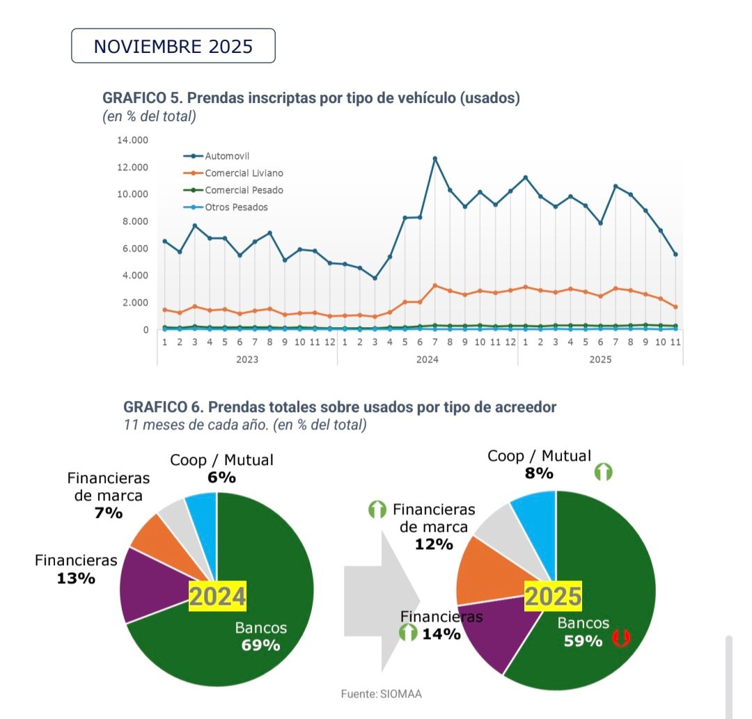 ● El mes de noviembre estuvo marcado por la caída estacional en el mercado minorista, lo que se reflejó directamente en la contracción de los instrumentos prendarios sobre el total de operaciones de vehículos nuevos y usados.
