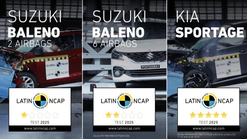El Programa de Evaluación de Vehículos Nuevos para América Latina y el Caribe, Latin NCAP, publicó hoy la novena y última ronda de resultados del año 2025. Estos resultados muestran a Suzuki con una reacción tras la selección de la versión de dos bolsas de aire del Baleno, calificada con una estrella, y la estandarización de la versión de seis bolsas de aire, obteniendo dos estrellas. El renovado Kia Sportage obtuvo cinco estrellas. Estos son los últimos resultados antes de la actualización del protocolo de evaluación de Latin NCAP en 2026 donde se implementarán importantes mejoras de seguridad.