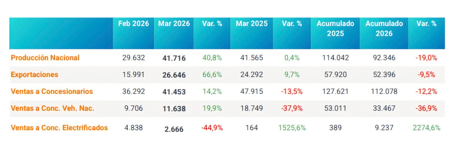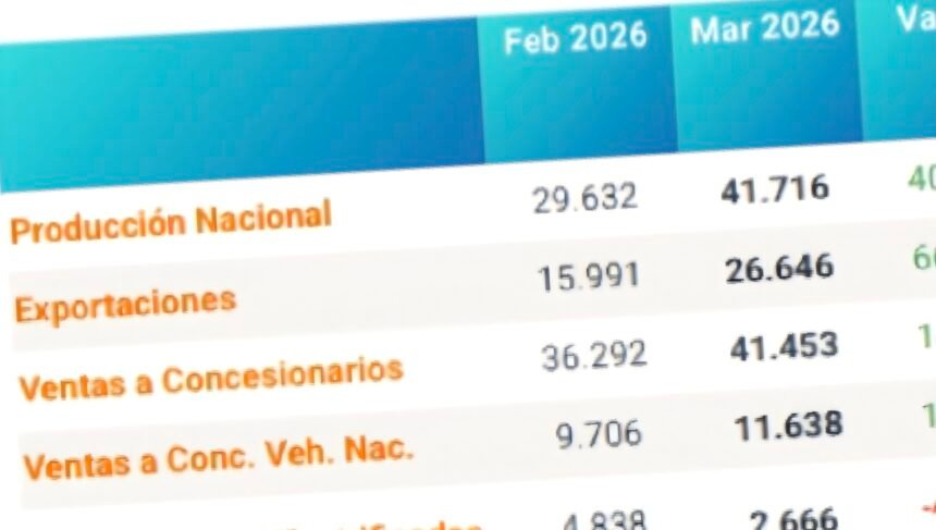 La producción de vehículo revirtió en marzo la tendencia negativa de los dos primeros meses de 2026. Subió un simbólico 0,4% interanual, que sólo sirve para la estadística, pero que muestra que hay una estabilidad en el nivel de actividad. No una caída abrupta.