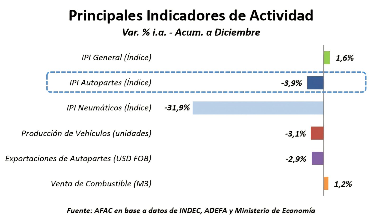 El sector autopartista argentino cerró el año 2025 con una caída acumulada del 3,9% en su nivel de actividad respecto del mismo período de 2024, en un contexto marcado por retrocesos generalizados en casi todos los rubros vinculados a la cadena automotriz.