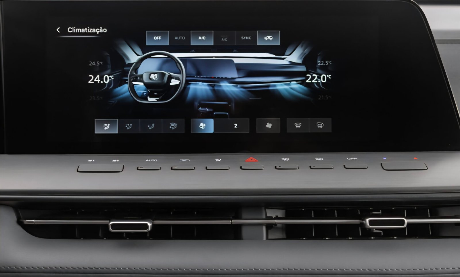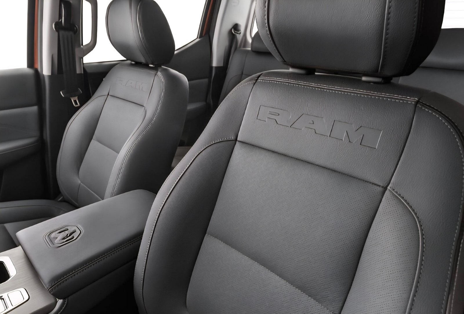 En el interior, la nueva Ram Dakota ofrece un ambiente diseñado para brindar confort, funcionalidad y una percepción de calidad superior desde el primer contacto. El habitáculo se presenta con tapizado en cuero negro, volante revestido en cuero con ajuste en altura y profundidad y comandos integrados, junto con asientos delanteros con regulación eléctrica, lo que permite encontrar la postura de manejo ideal con facilidad. El climatizador automático bi-zona asegura el bienestar de todos los ocupantes, mientras que la consola central de doble altura integra apoyabrazos, portavasos, almacenamiento vertical para dispositivos y múltiples conexiones (USB A, USB C y toma 12V), facilitando la organización y el uso cotidiano. El cuidado por los pasajeros traseros también se evidencia en las salidas de ventilación dedicadas y en el apoyabrazos trasero con portavasos, favoreciendo viajes más cómodos.